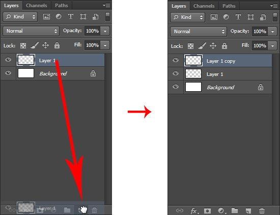 포토샵으로 작업을 하다 보면 똑같은 레이어를 복사해야 할 일이 많습니다. 복사하고싶은 레이어를 우클릭 하여 Duplicate Layer를 클릭하여 복사를 합니다. 혹은 복사하고싶은 레이어를 드래그하여 Create a new layer 아이콘으로 끌어다 놓아 레이어 복사를 할 수 있습니다. 가장 간단한 방법으로 단축키를 사용하는 것이 있겠지요. 레이어 복사 단축키는 Ctrl + J 입니다. 복사된 레이어의 이름은 원본 레이어 뒤에 'copy' 를 달고 생성됩니다.